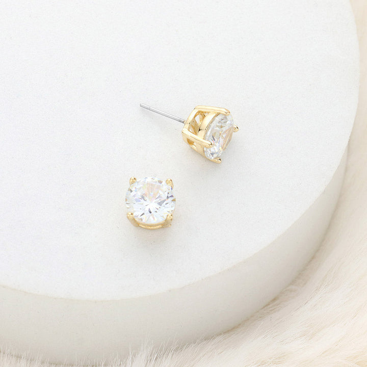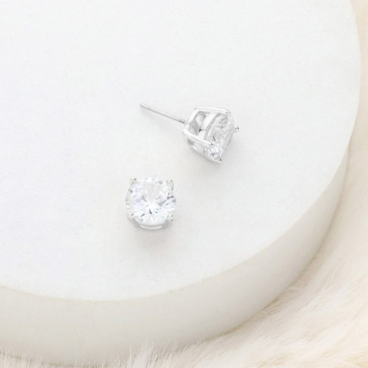 9mm Round Crystal Cubic Zirconia Stud Earrings in Clear Gift Box - Ready to Gift