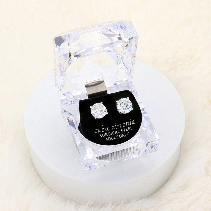 - 9mm Round Crystal Cubic Zirconia Stud Earrings in Clear Gift Box - Ready to Gift